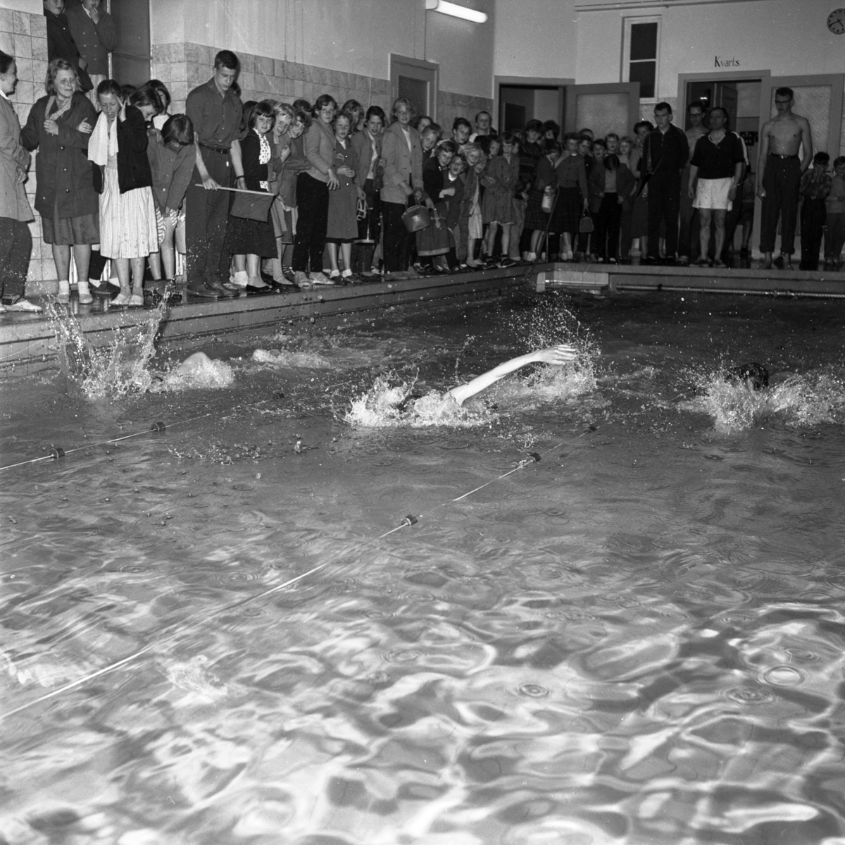 Jakobssons skolklass tävlar i Huskvarna badhus, byggt 1910.