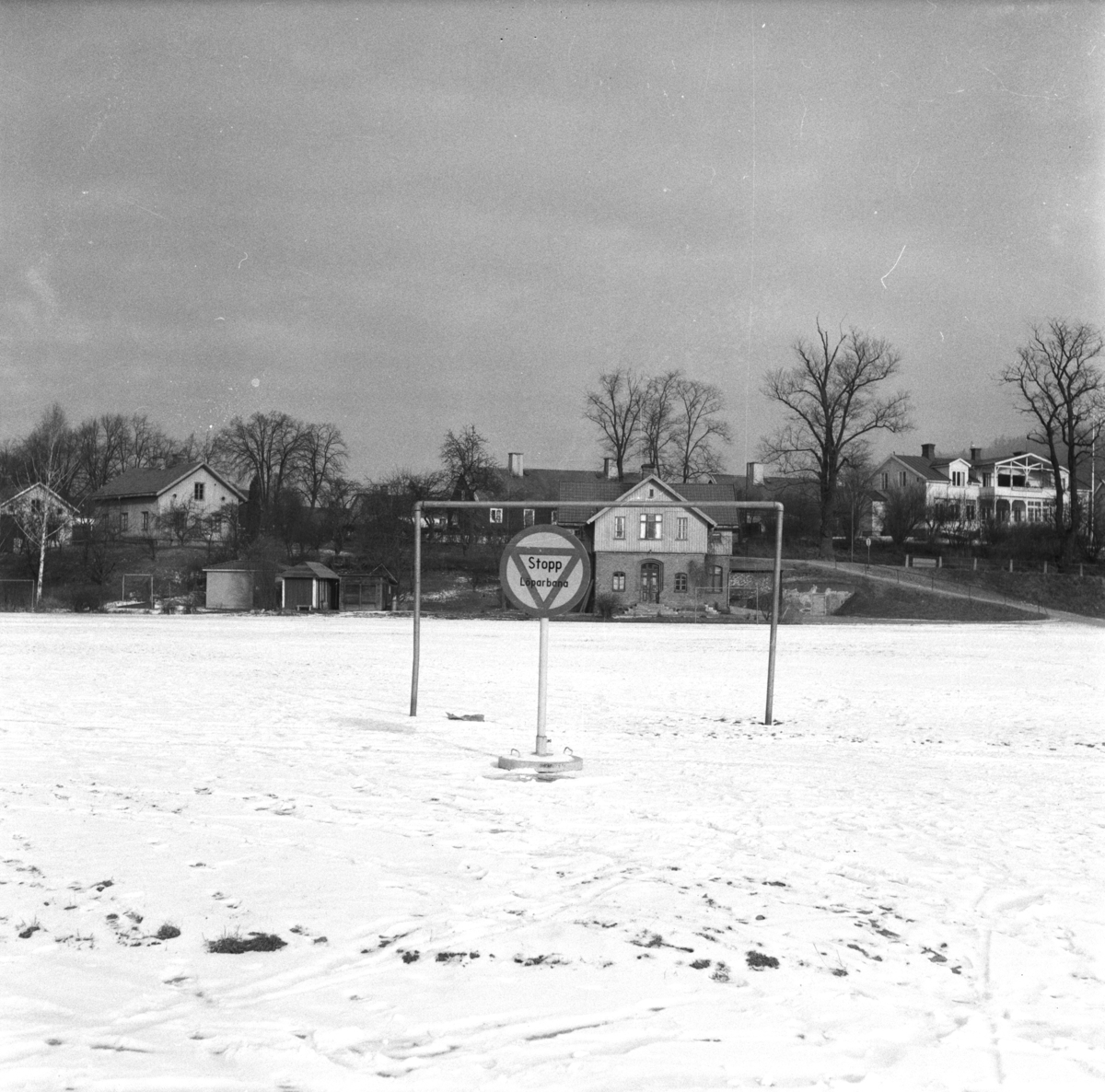 Stoppskylt på Sotarvallen i Huskvana på 1960-talet.