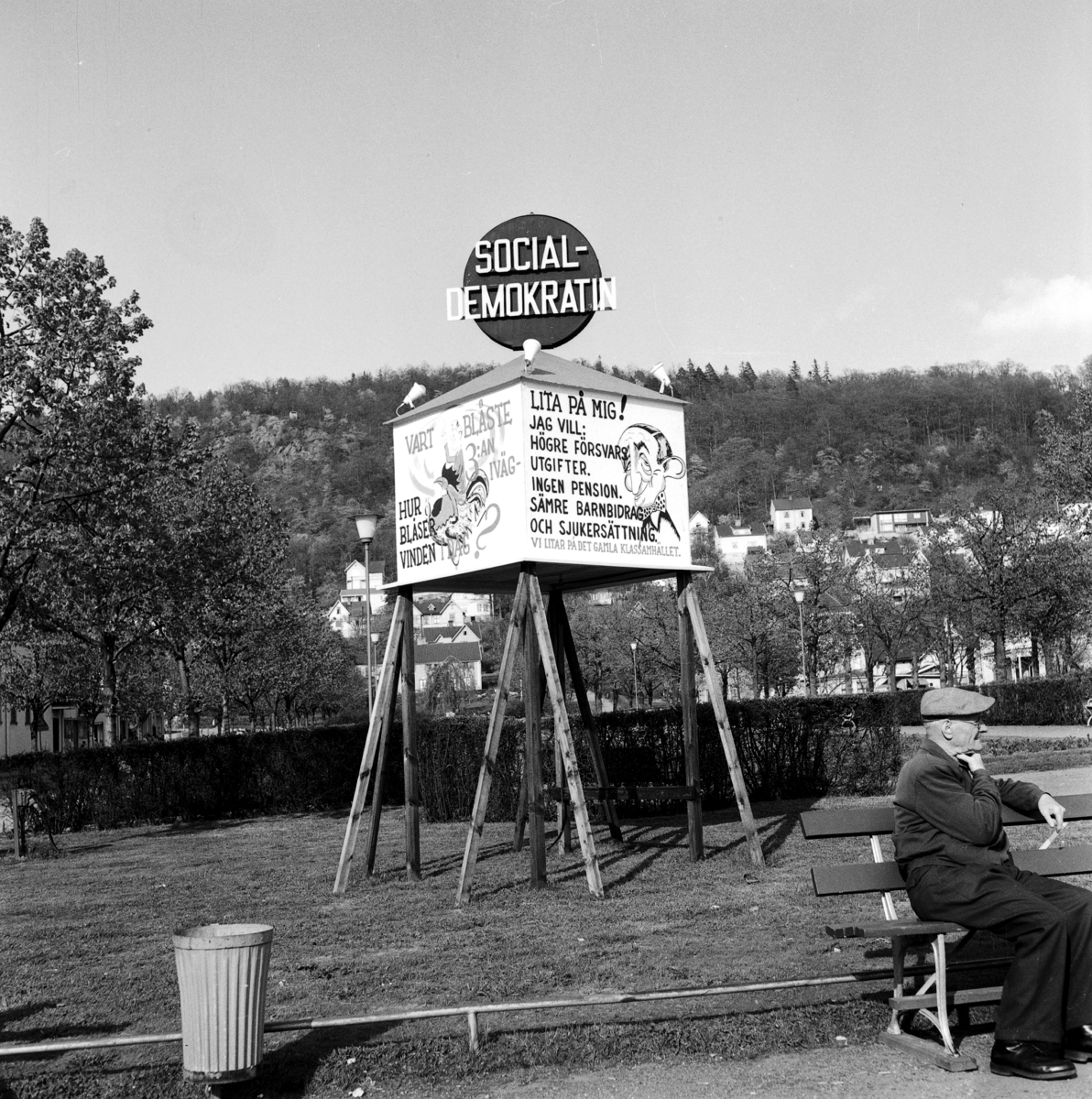 Socialdemokraternas valpropaganda på Esplanaden i Huskvarna.