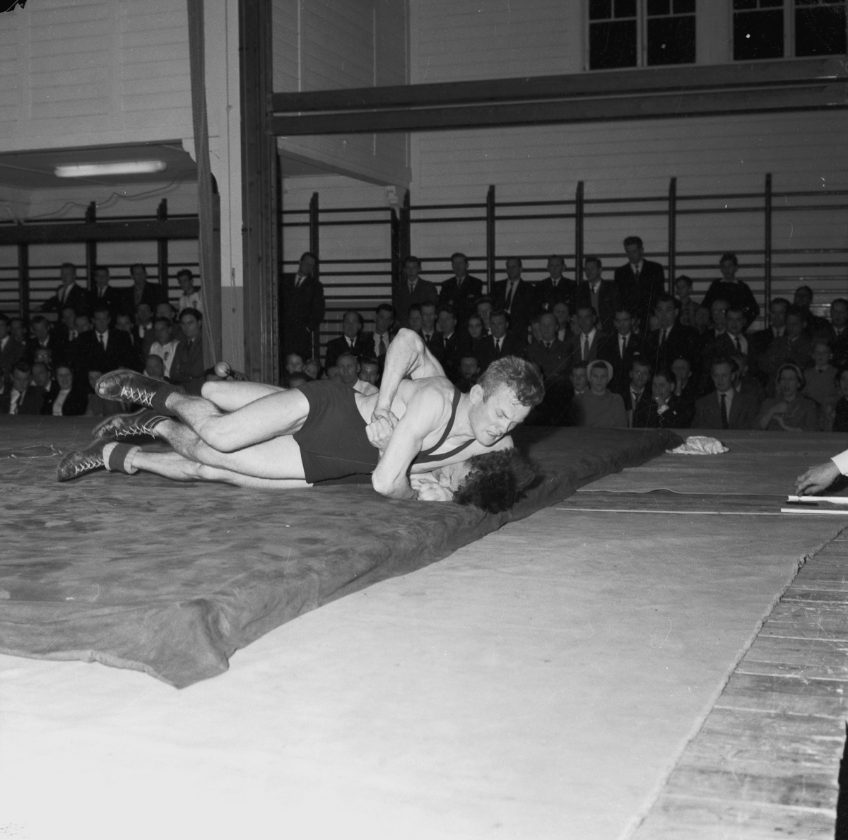Titel: Fyrstadsbrottning i Huskvarna idrottshus.