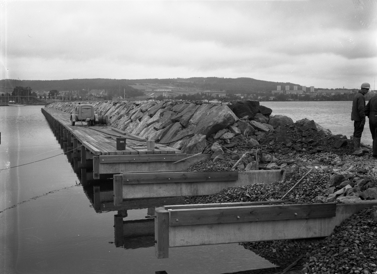 Bygge av ny småbåtshamn i Huskvarna 1968.