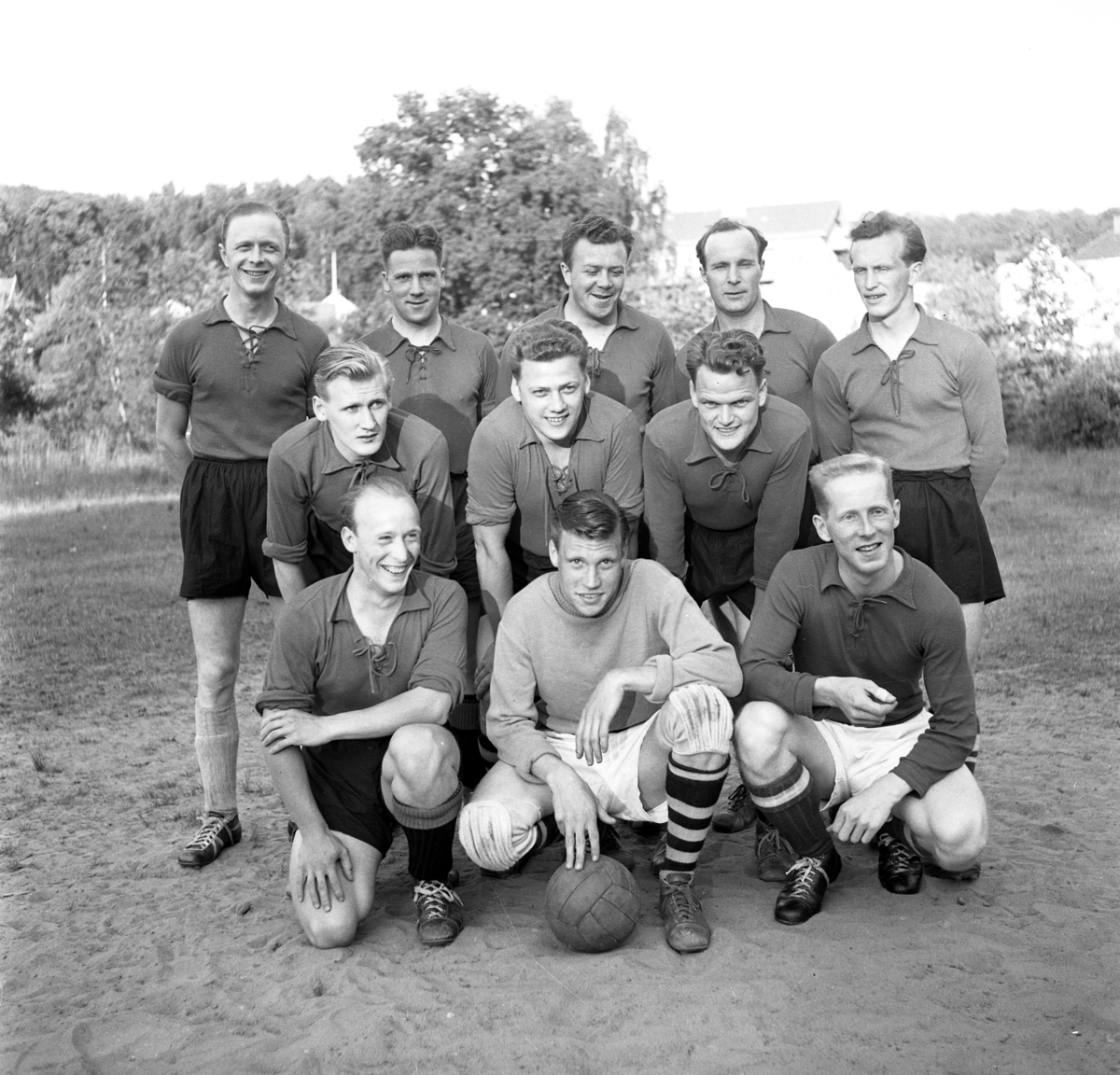 Husqvarnas hantverkslag spelar korpfotboll i Huskvarna den 7 juli 1955.