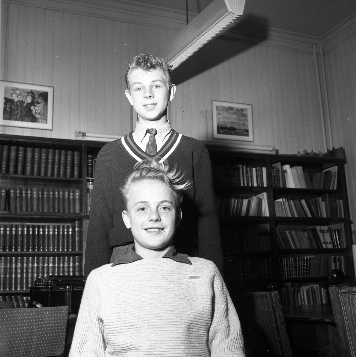 Två skolpojkar i Huskvarna den 14 mars 1956.