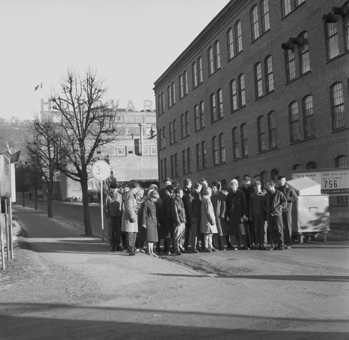 Det är 20 januari och det står en grupp ungdomar utanför Husqvarna fabriken.