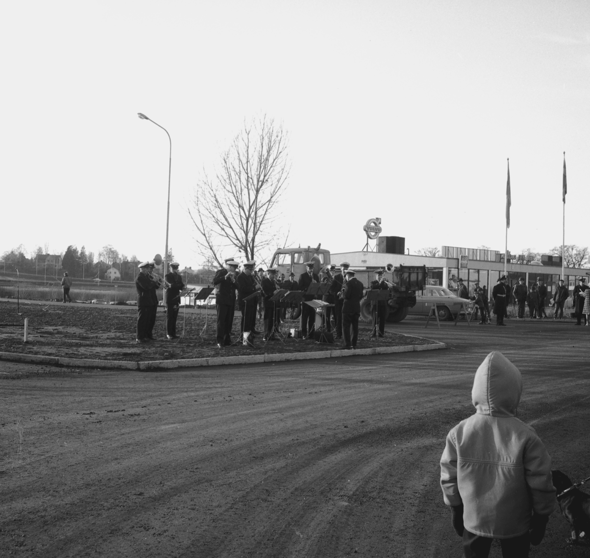 Huskvarna musikkår underhåller vid invigning av Esplanadbron i Huskvarna.