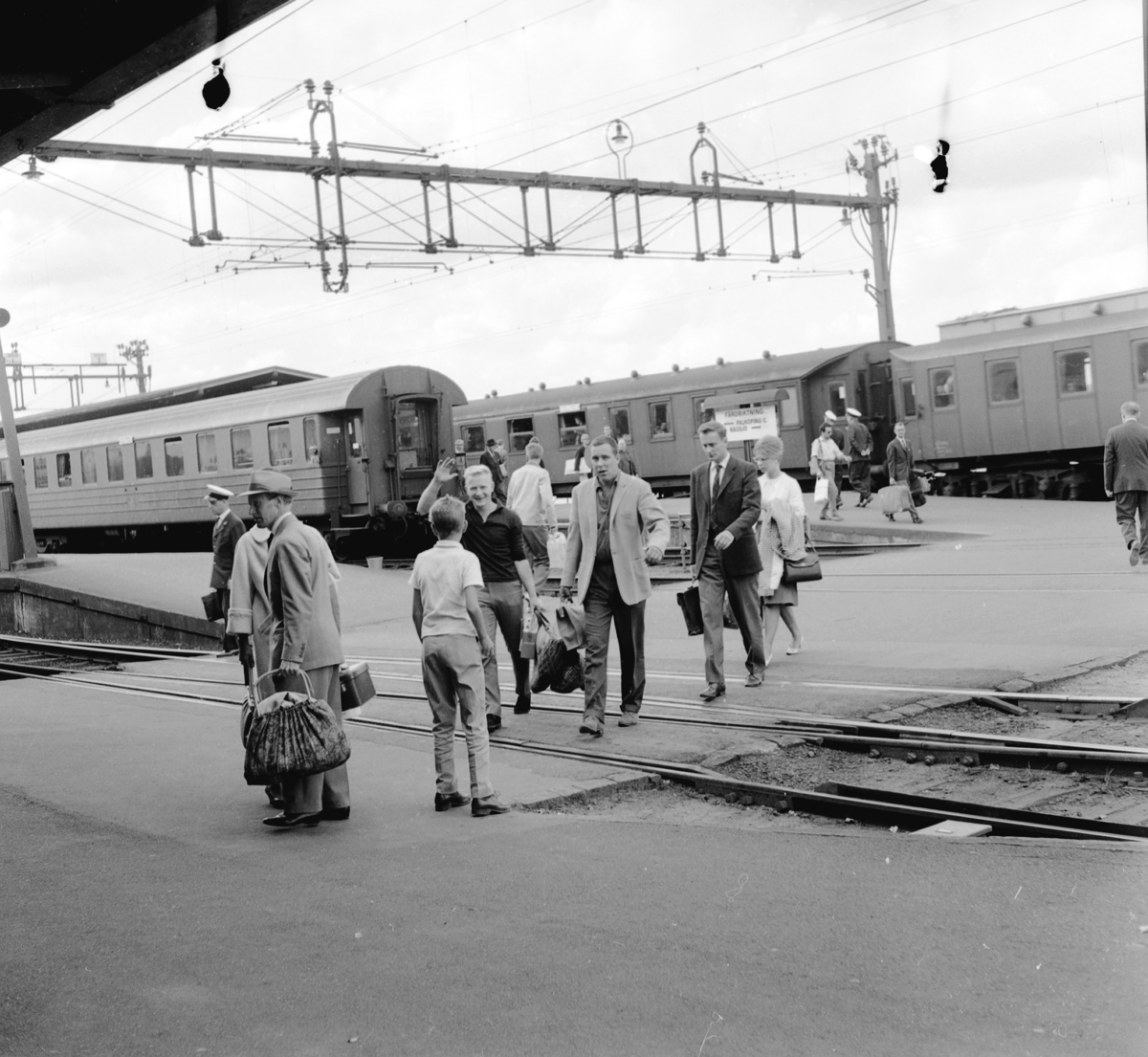 Resenärer på perrongen vid centralstationen i Jönköping.