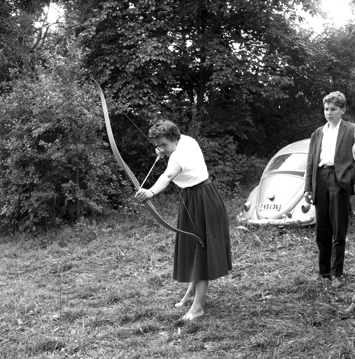 En kvinna håller på med bågskytte i Hulustorp utanför Huskvarna.