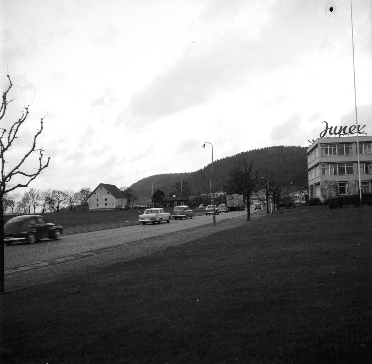 Bilar kör på Grännavägen utanför Junexhuset i Huskvarna.