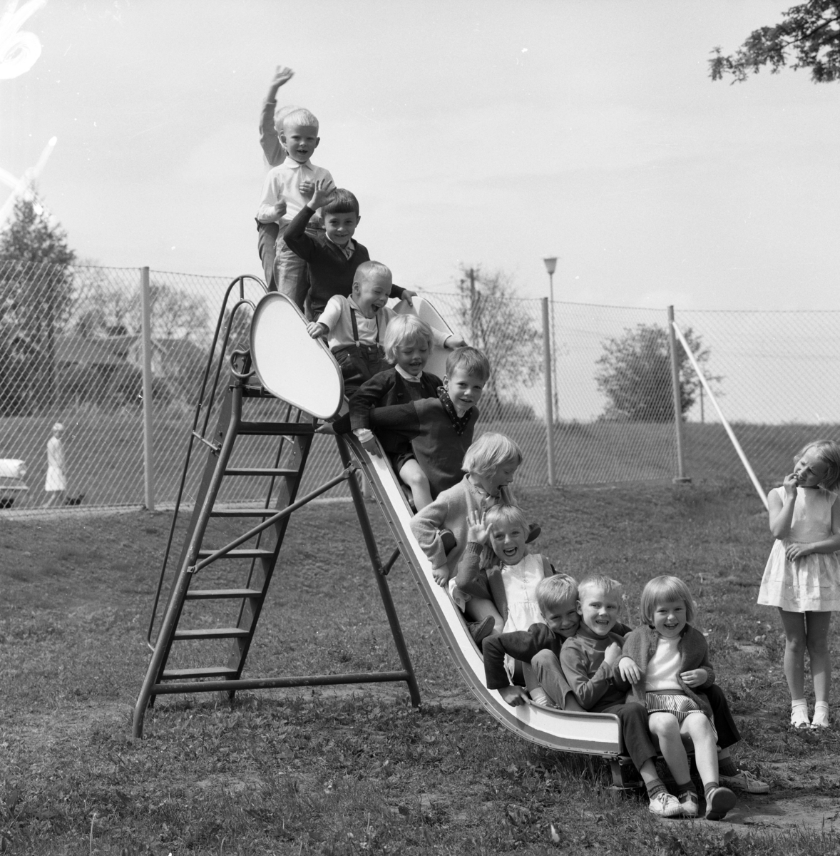 Majstångens barnträdgård i Huskvarna med fröken Linder den 12 juni 1965.