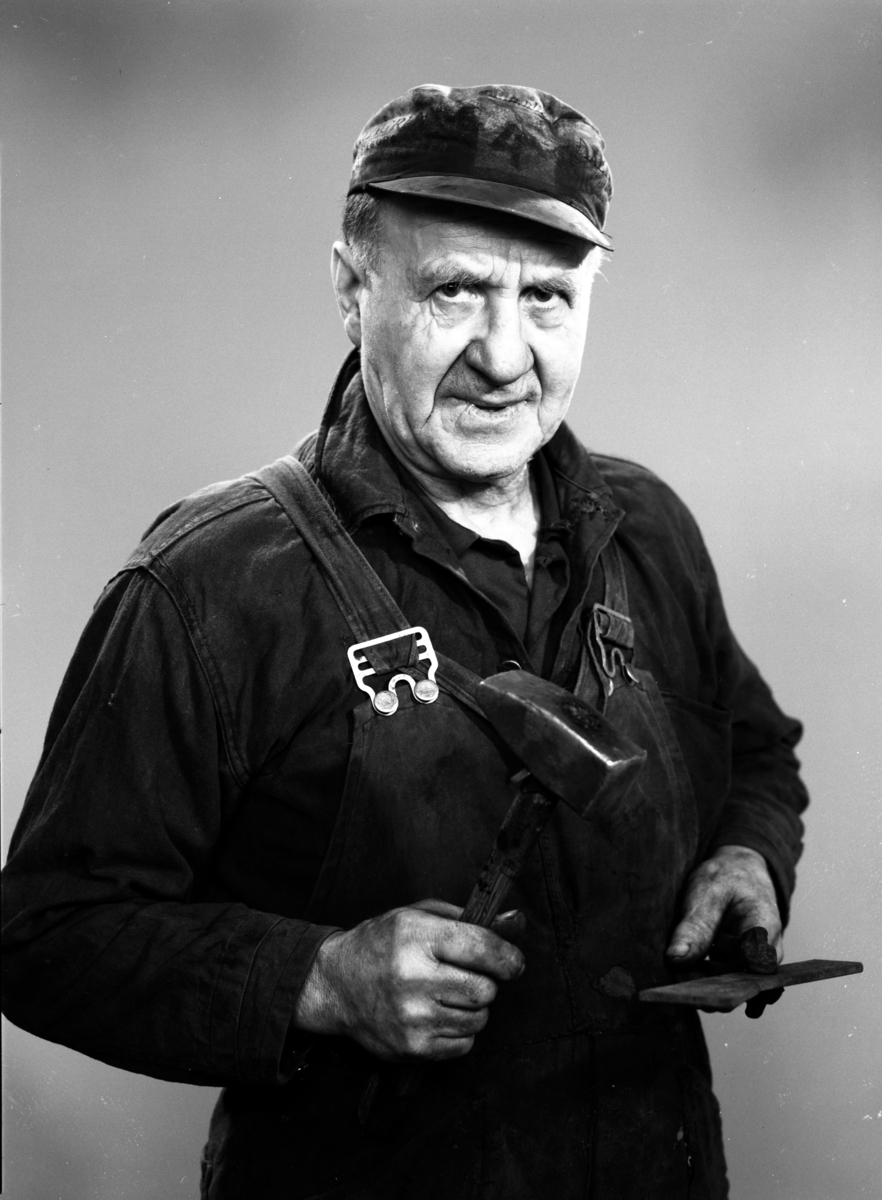 Porträtt av smeden Hilding "Kavlasme´n" Andersson den 12 januari 1966. Han var bror till smederna vid Kavlaplan i Huskvarna.