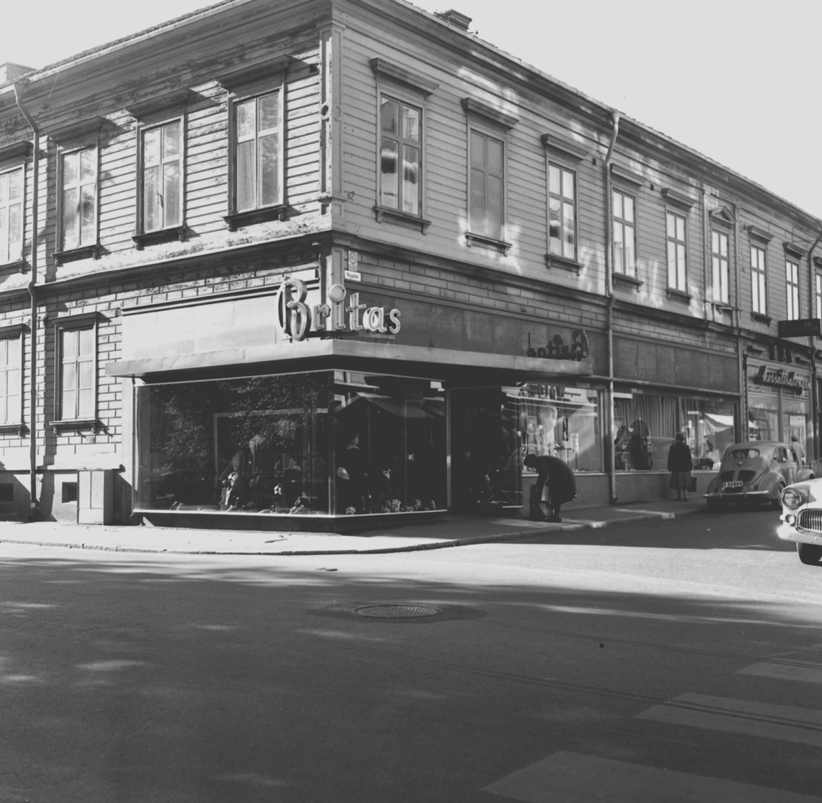 En affär som heter Britas i hörnet av Kyrkogatan och Nygatan i Jönköping.