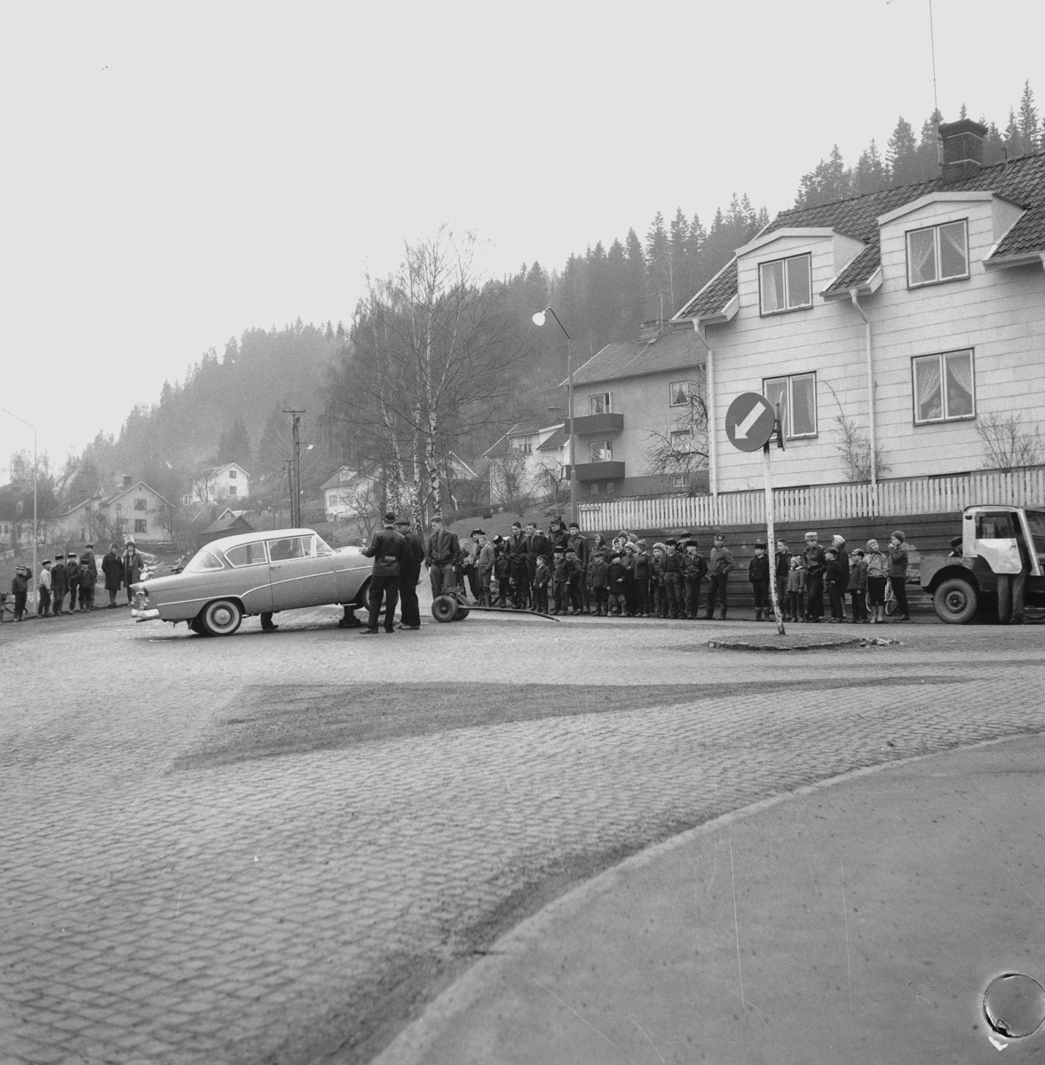 Problem med en bil i korsningen Wilhelm Thams väg och Rogbergavägen i Huskvarna.