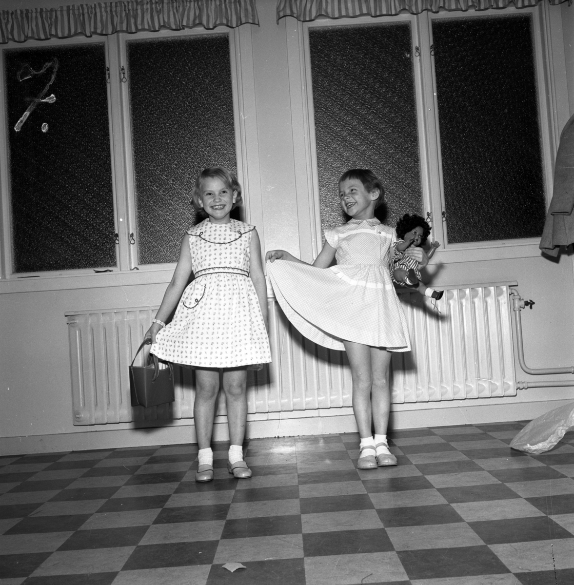 Titel: Den 21 mars 1956 arrangerade Huskvarna husmodersförening en modevisning i Idrottshuset. En rad företag deltog och behållningen gick till blinda barn.