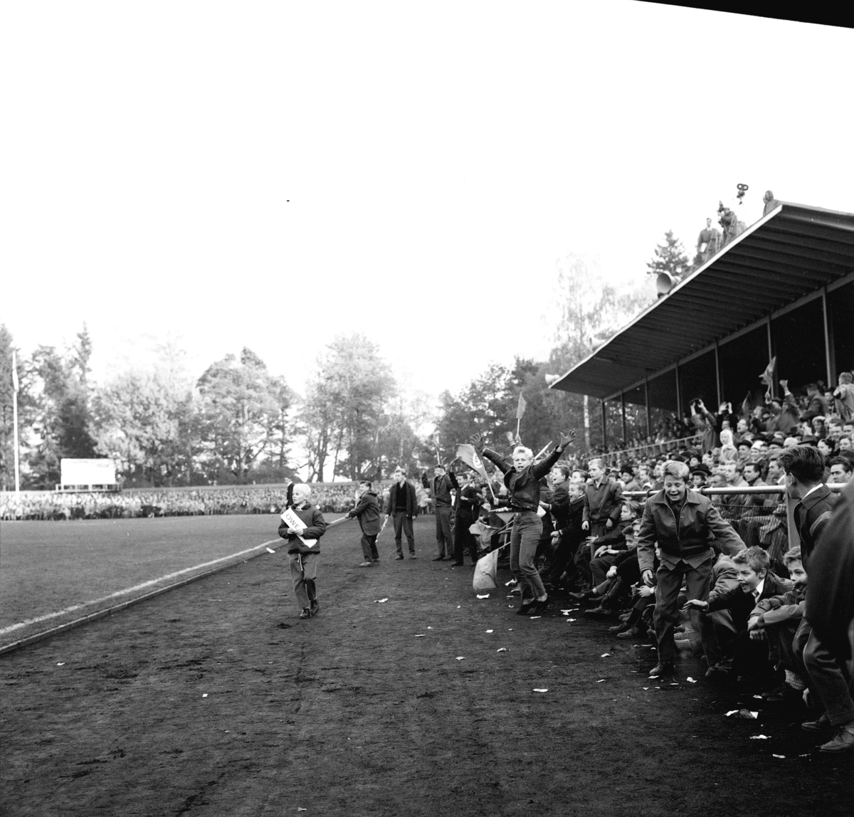 Publik tittar på fotbollsmatchen mellan Jönköping södra (J-södra) och Huskvarna idrottsförening (HIF) på Stadsparksvallen i Jönköping.