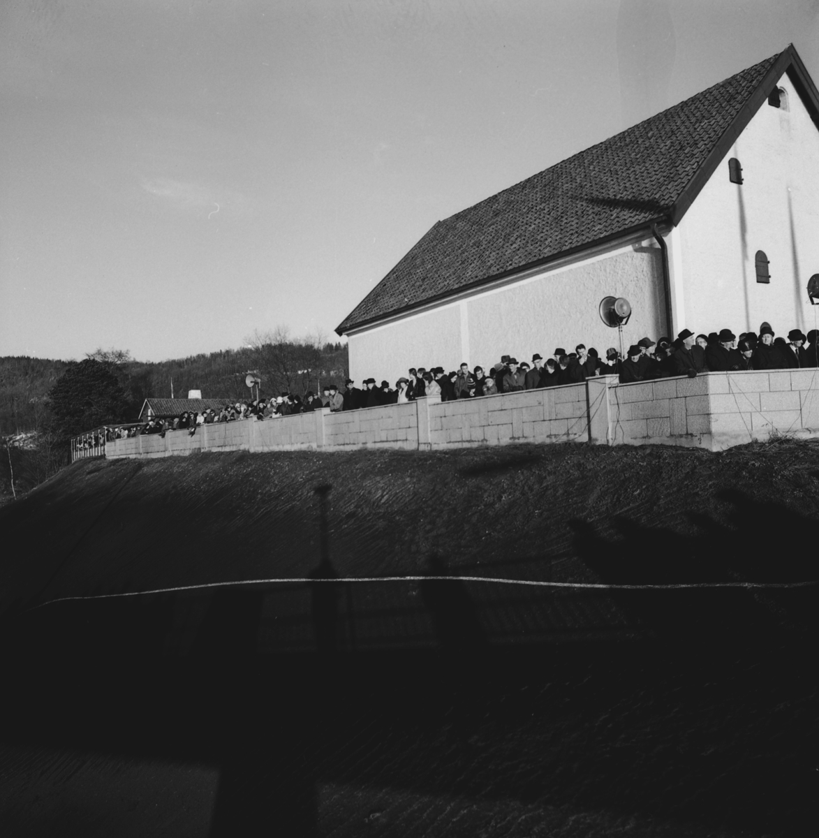 Utanför Kruthuset i Huskvarna har det samlats folk för att vara med på invigningen för den nya motorvägssträckan, E4, mellan Österängen och Brunstorp.