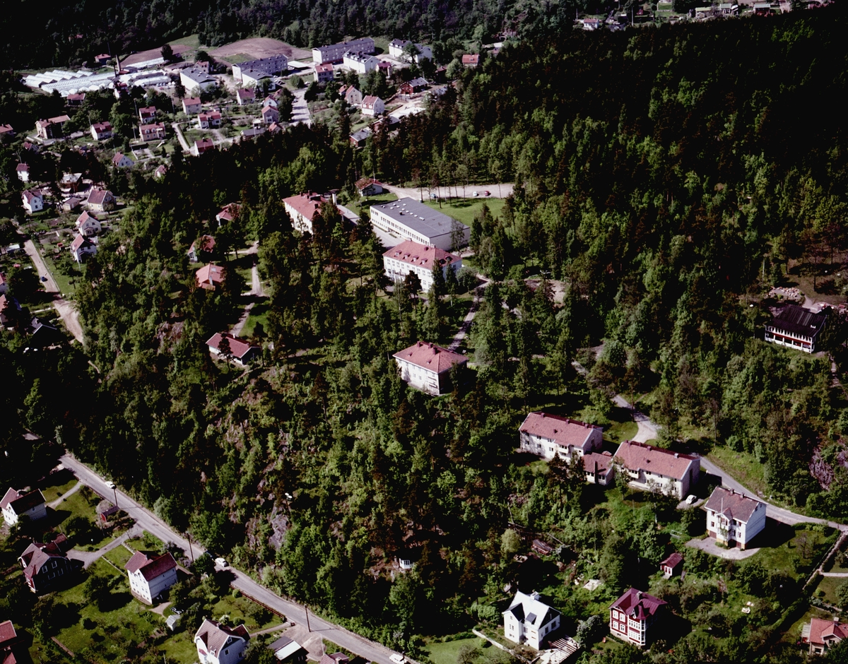 Flygfoto över Södra Vätterbygdens folkhögskola och området Mariebo i Jönköping. 1296/ 1967