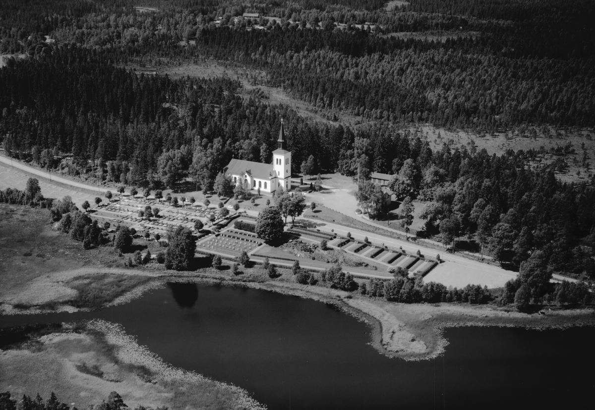 Flygfoto över Gnosjö kyrka i Jönköpings län. 1251/1964