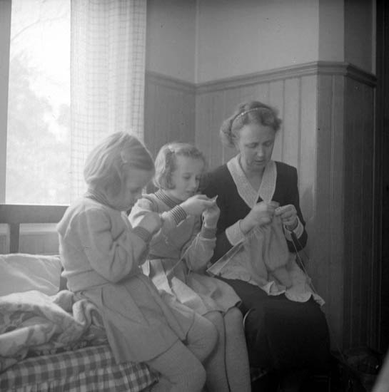 I en lägenhet i Jönköping sitter en mor på kökssoffan med sina två döttrar och lär dem att sticka.