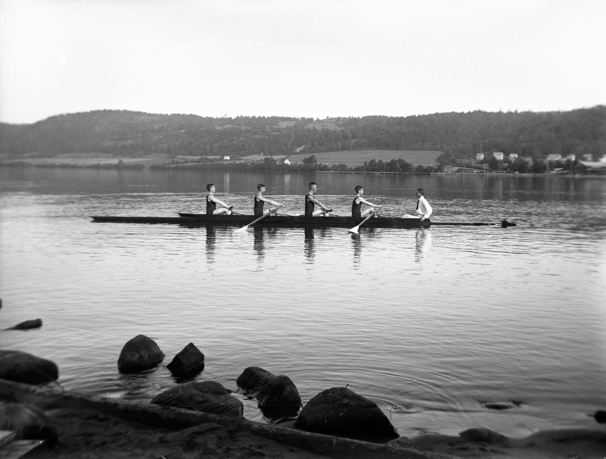 Ett roddarlag tränar i Vättern utanför Huskvarna.
