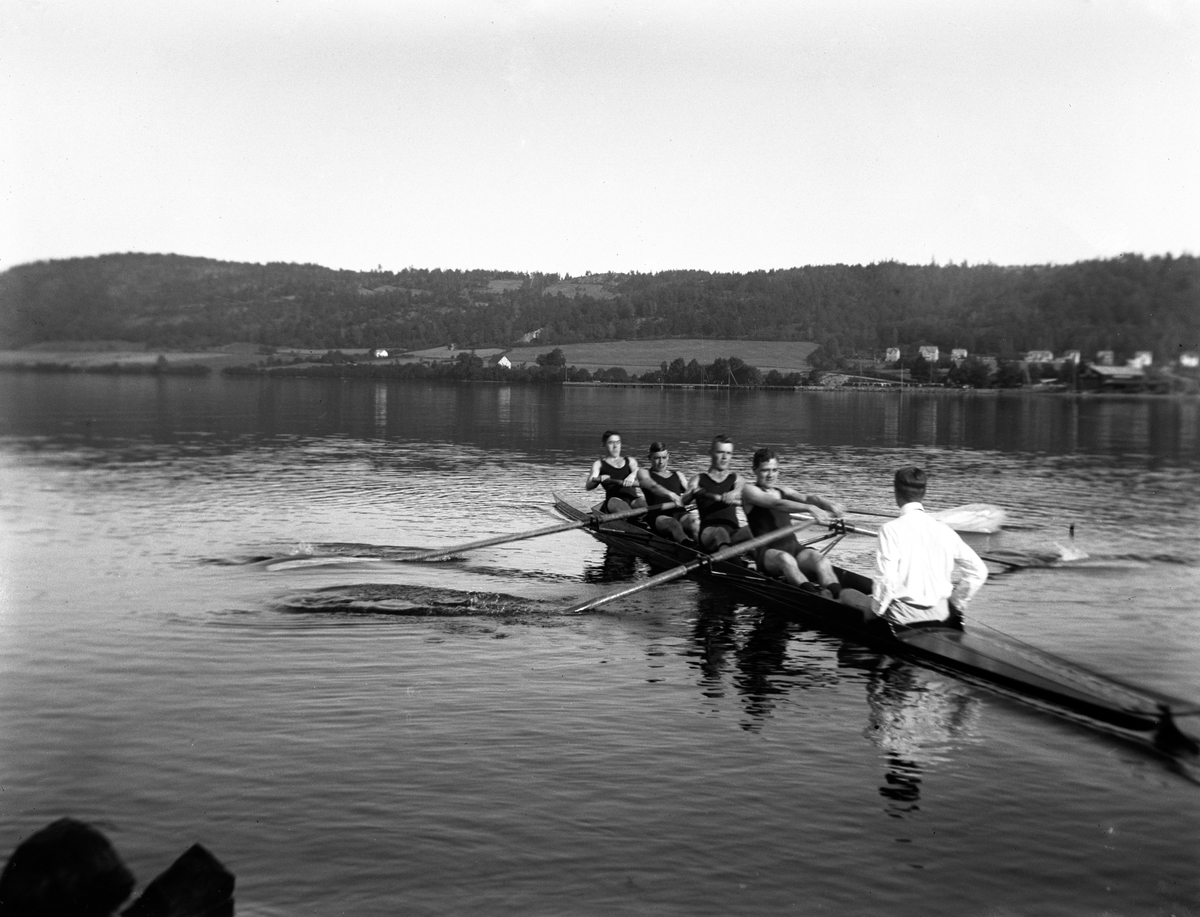 Ett roddarlag tränar i Vättern utanför Huskvarna.
