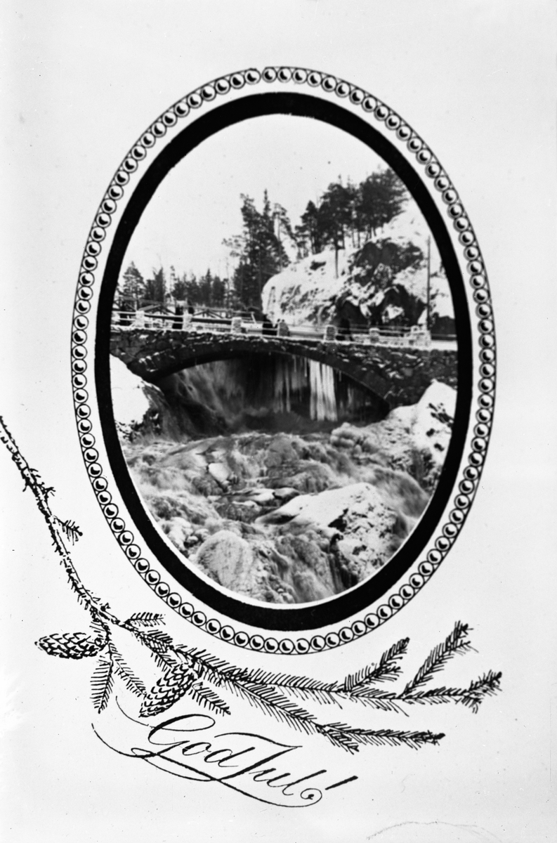Julkort med motiv från Ådalsvägen i Huskvarna med texten GOD JUL.