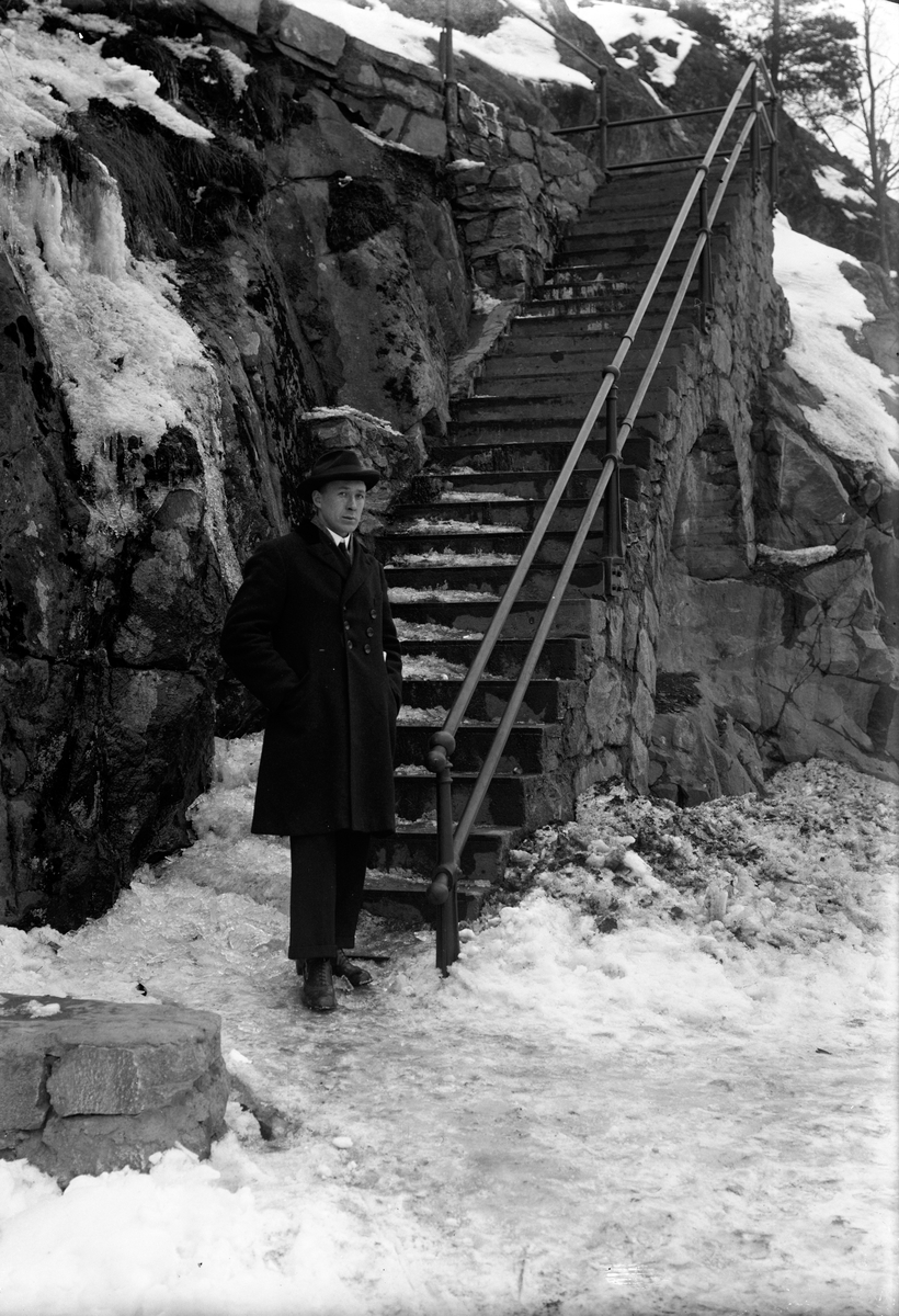 En man står vid trappan vid Ådalsvägen i Huskvarna.