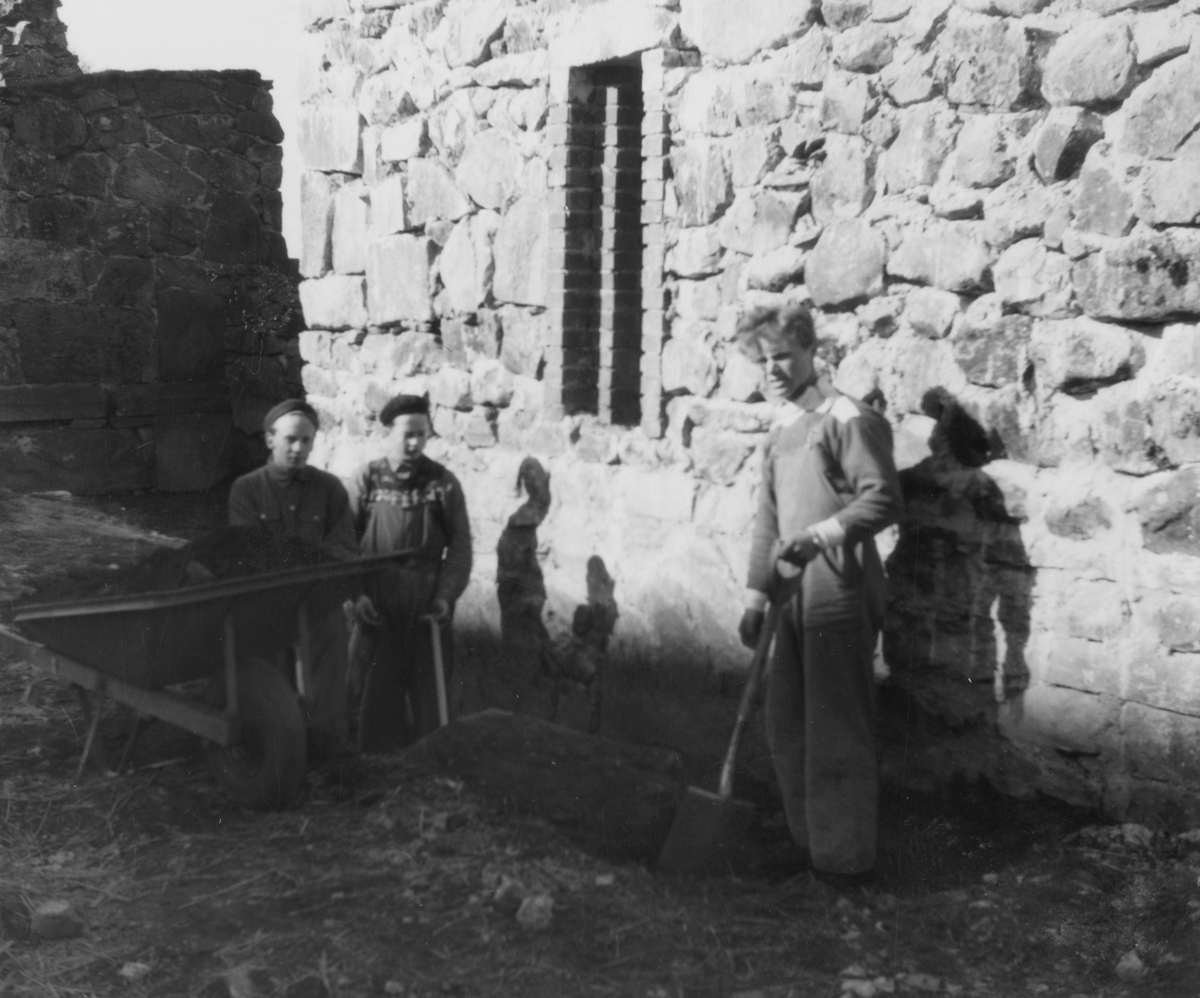 Utgrävning runt Bondkyrkan vid Nydala kloster av G Kassman och vapenfria värnpliktiga.