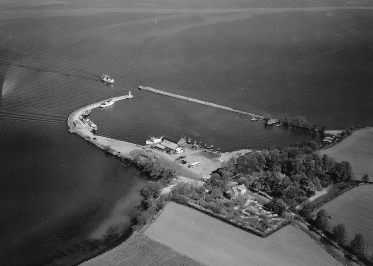 Flygfoto över Gränna hamn i Jönköpings kommun. Nr R 628.
