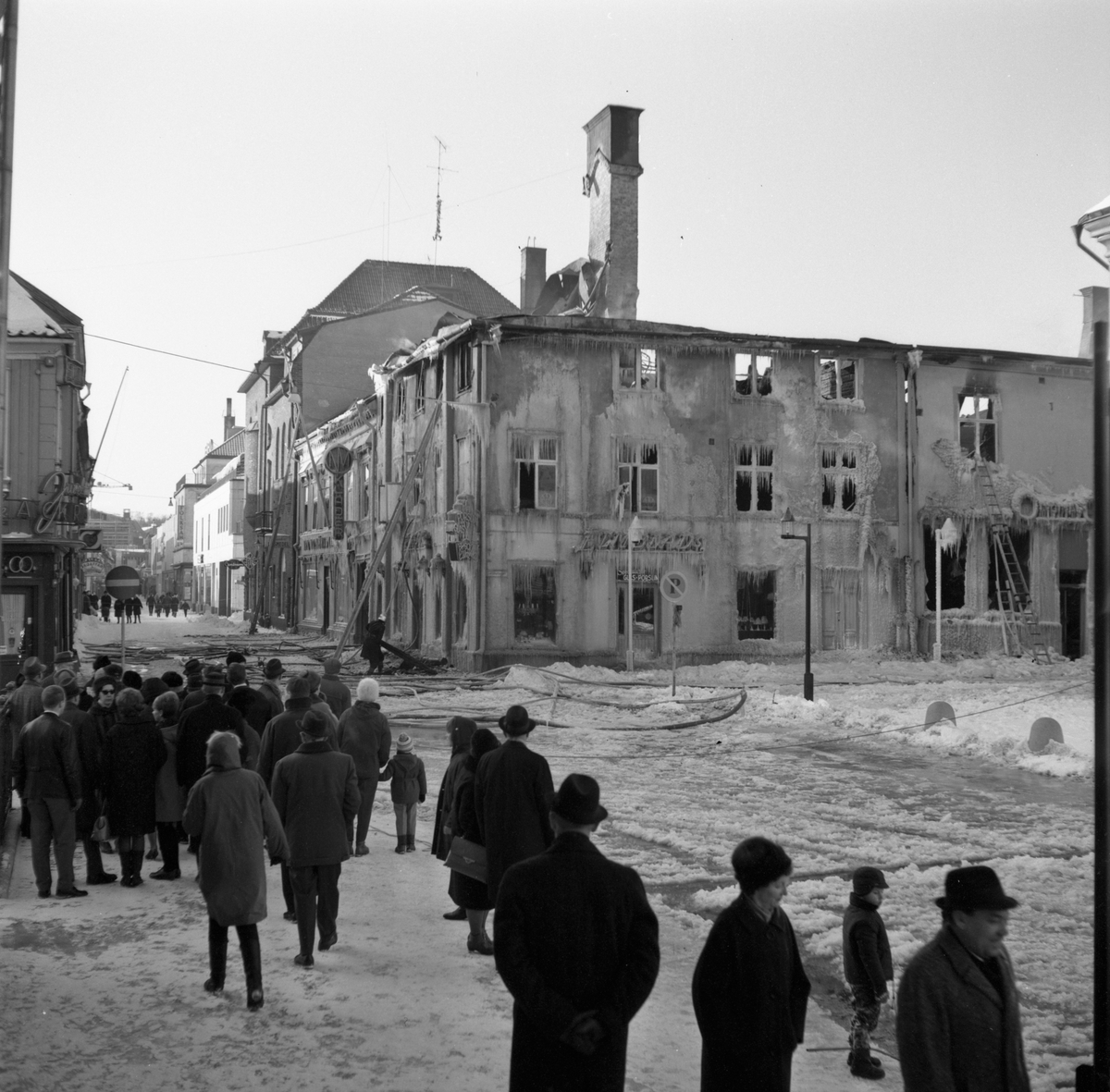Branden i Elmblads Specialaffär Glas - Porslin vid Hovrättstorget i Jönköping, år 1965.