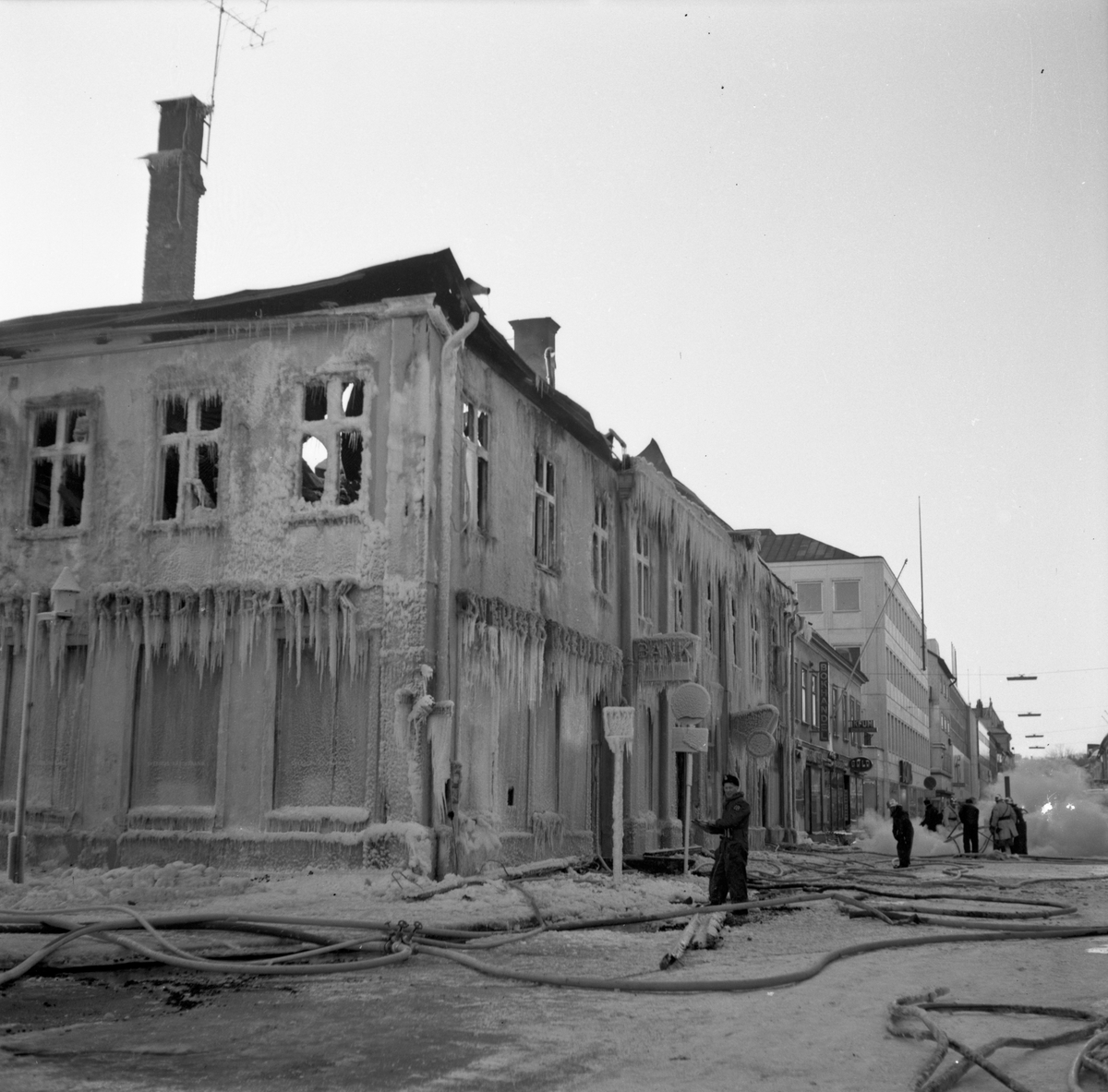 Branden i Elmblads Specialaffär Glas - Porslin vid Hovrättstorget i Jönköping, år 1965.