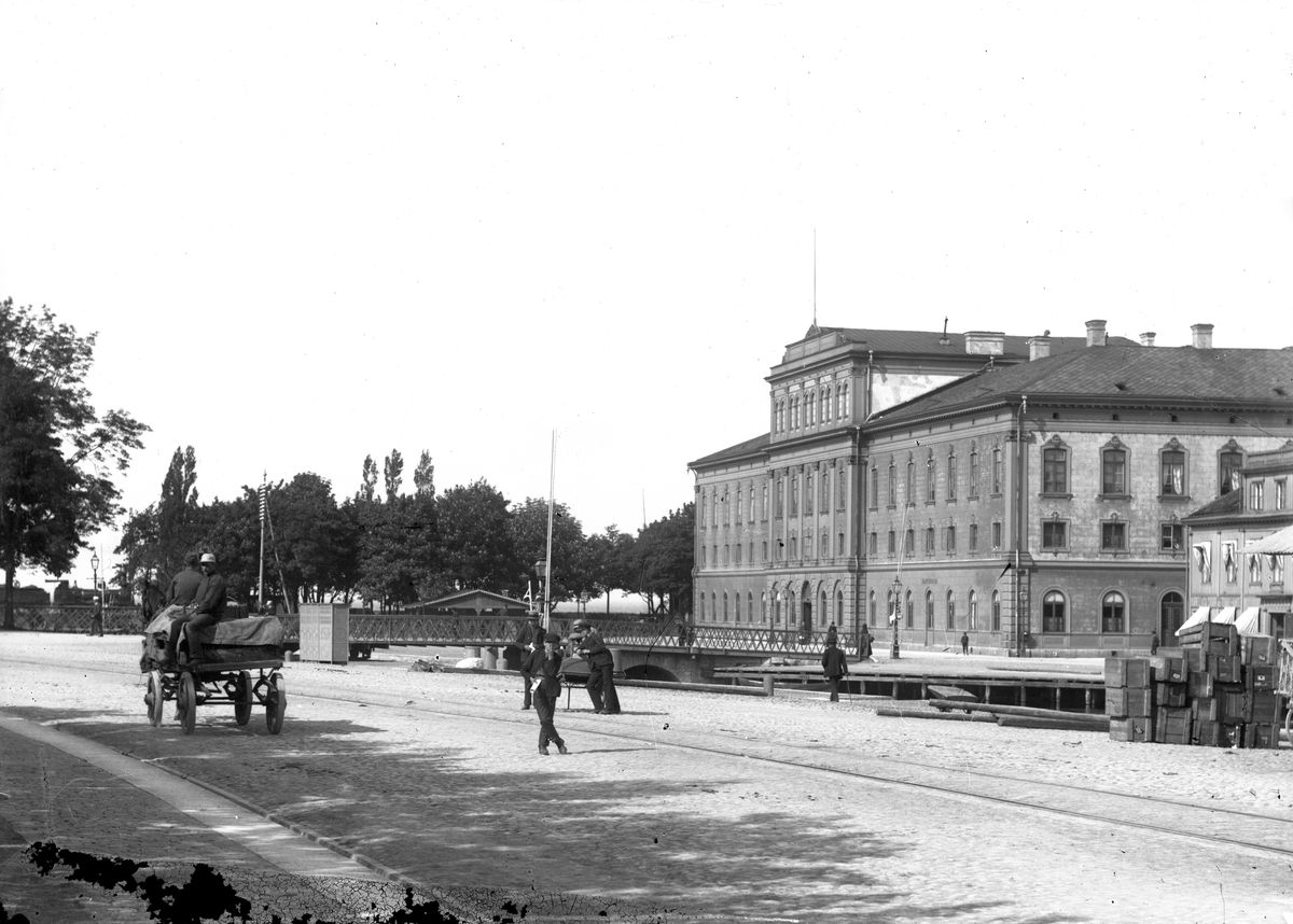 Svintorget i Jönköping med Vindbron vid kanalen och Stora Hotellet i bakgrunden.