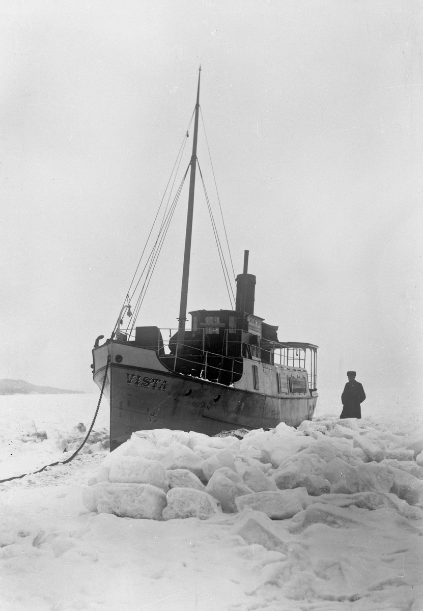 Fartyget Vista har fastnat utanför Jönköpings hamn.