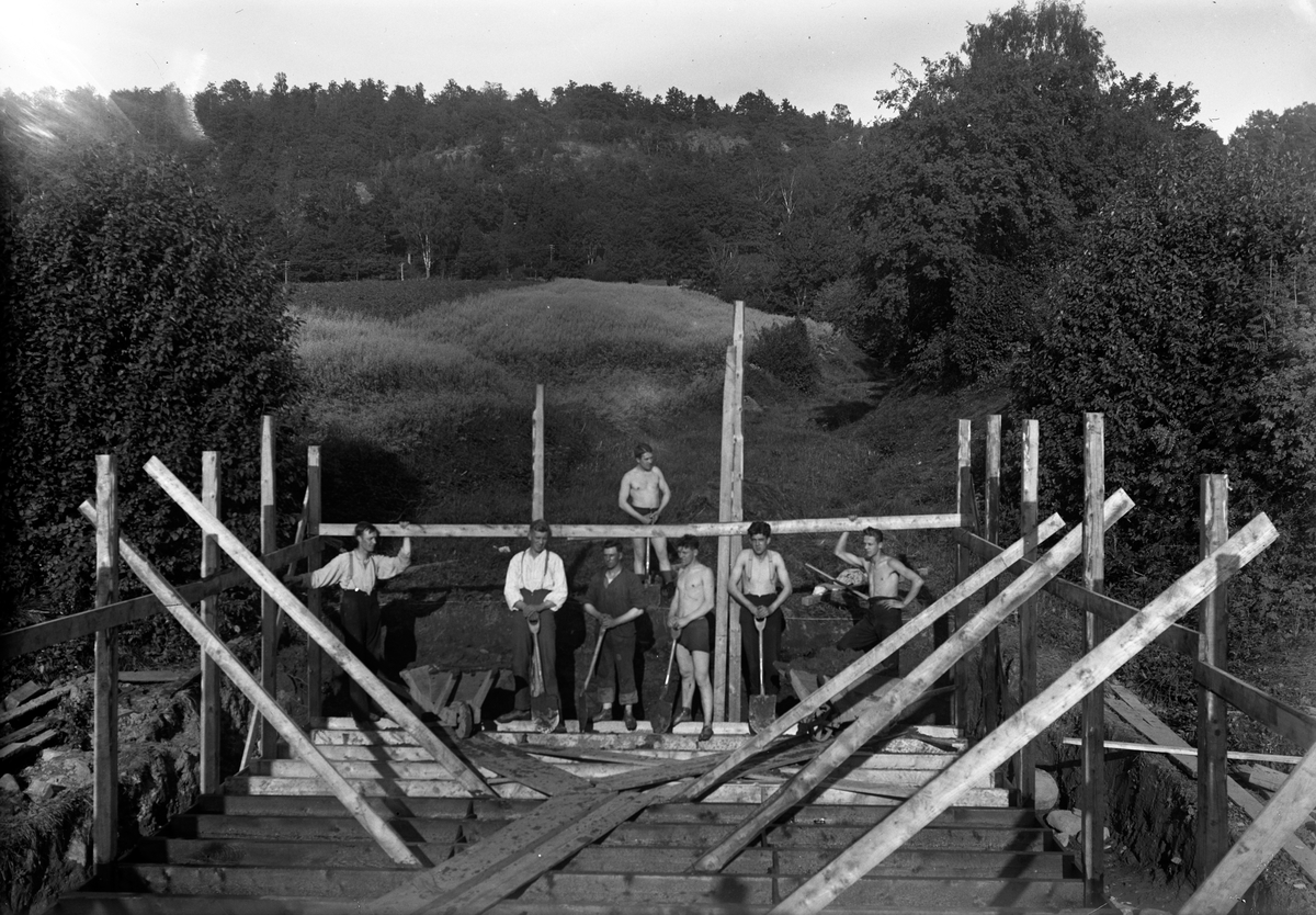 Titel: Ådalsvägen i Huskvarna. Övre bron under byggnad.