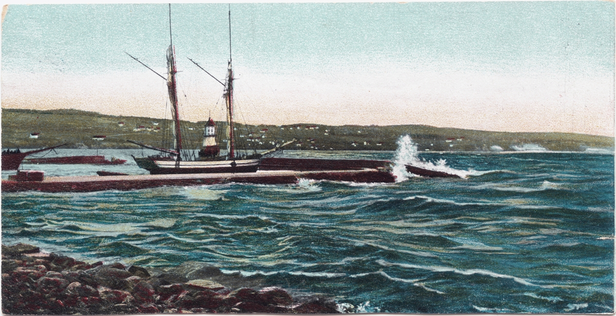 Ett fartyg ligger vid kajen i Jönköpings hamn.