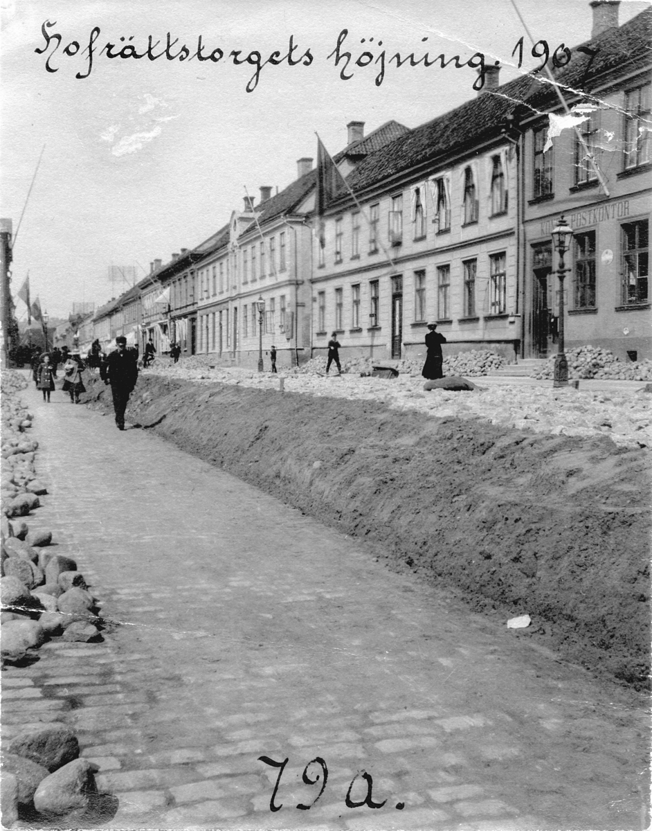 Anläggning av spårvägsnät på Östra Storgatan vid Hovrättstorget i Jönköping.