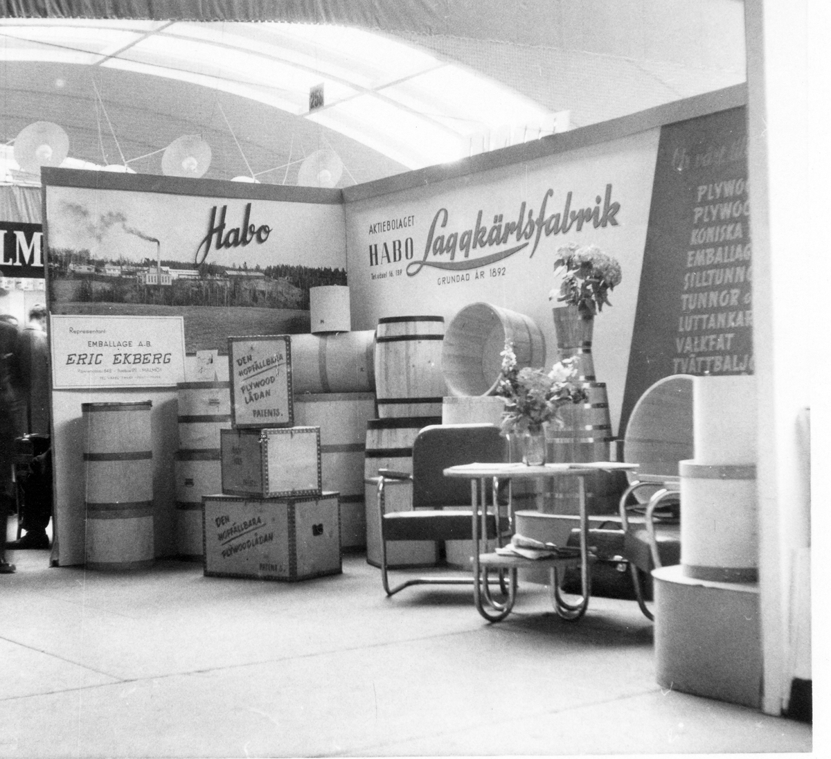 Habo Laggkärlsfabrik är representerad vid en utställning i Malmö. Eric Ekberg var deras stora återförsäljare på plywoodtunnor.