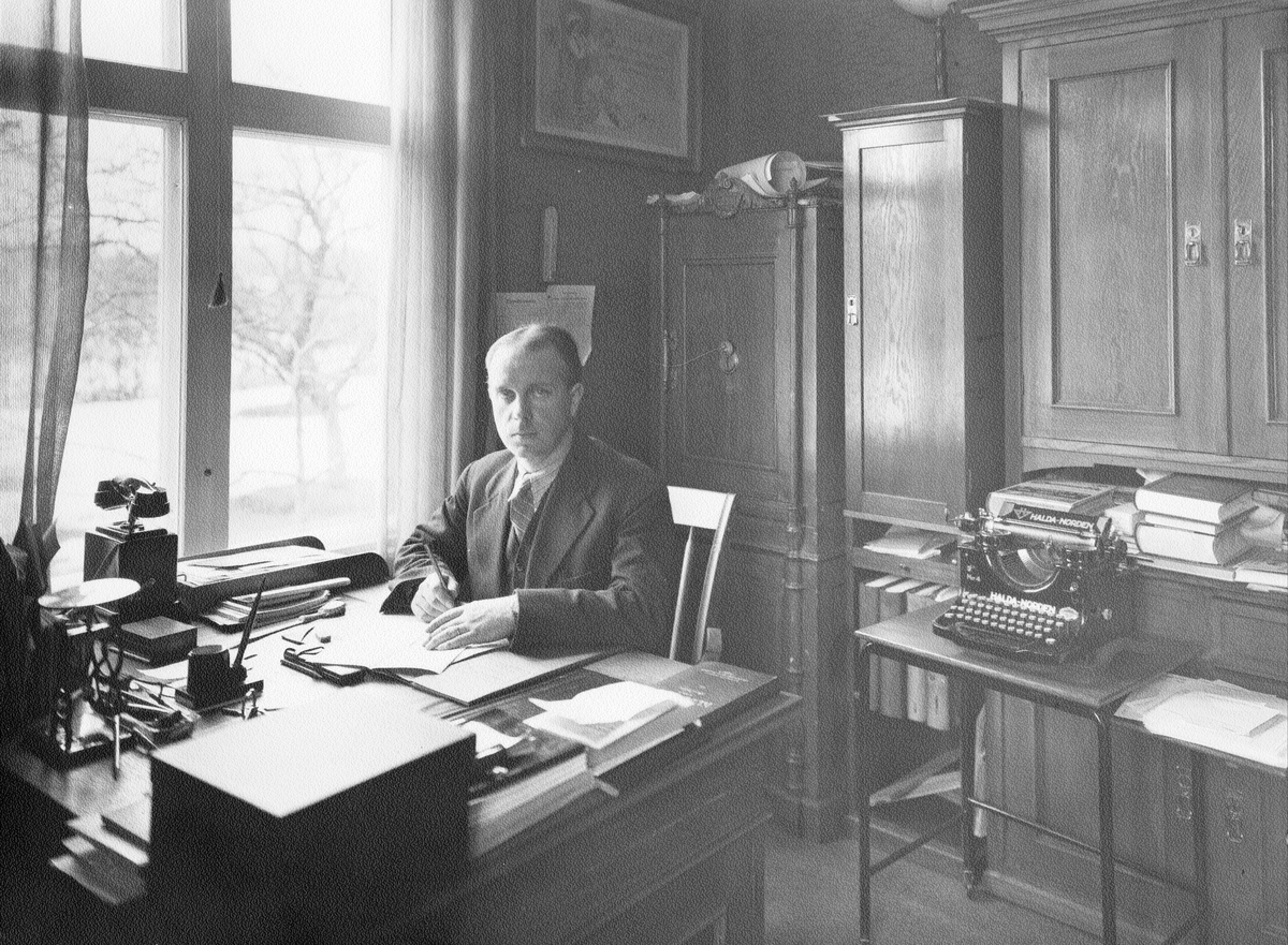 Habo Laggkärlsfabrik. På kontoret, som då var på Carlsfors, sitter Trygve Elwing vid sitt skrivbord.