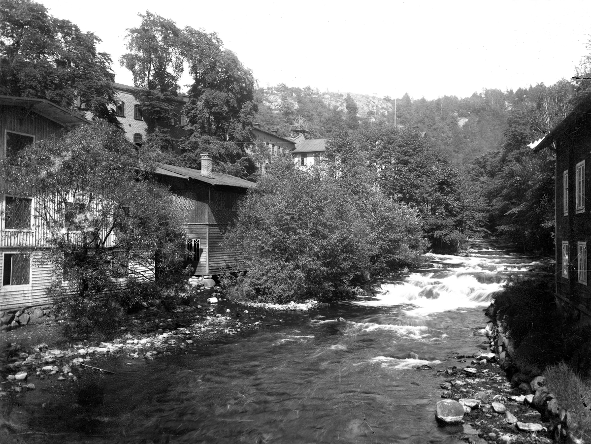 Vattenfall i Huskvarna. Till vänster Huskvarna vapenfabrik.