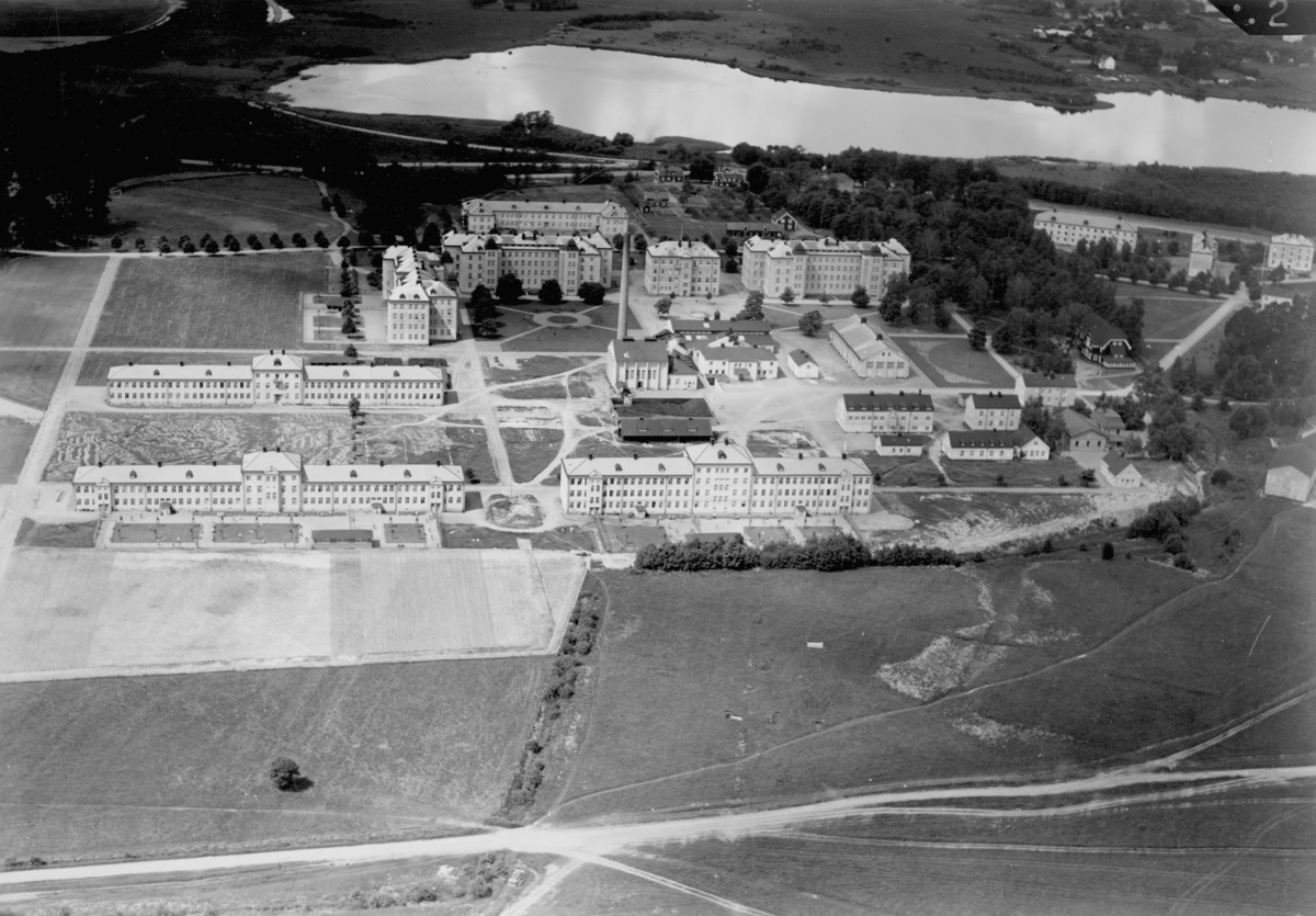 Flygfoto över Ryhovs sjukhusområde, tidigare Jönköpings regemente. Nr. D. 1821