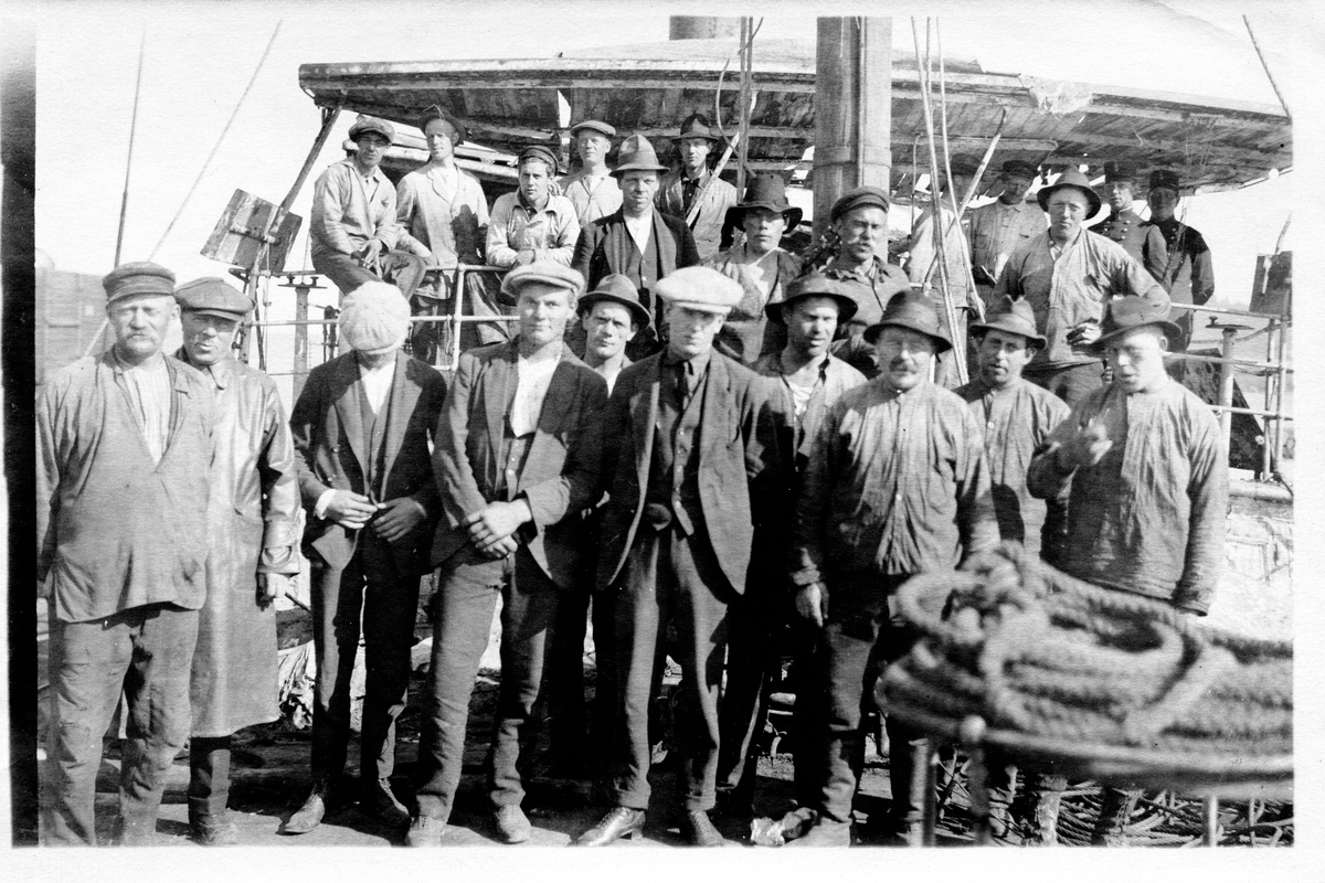 Bärgning av S/S Per Brahe utanför Hästholmen i Vättern. Många män arbetade med bärgningen.