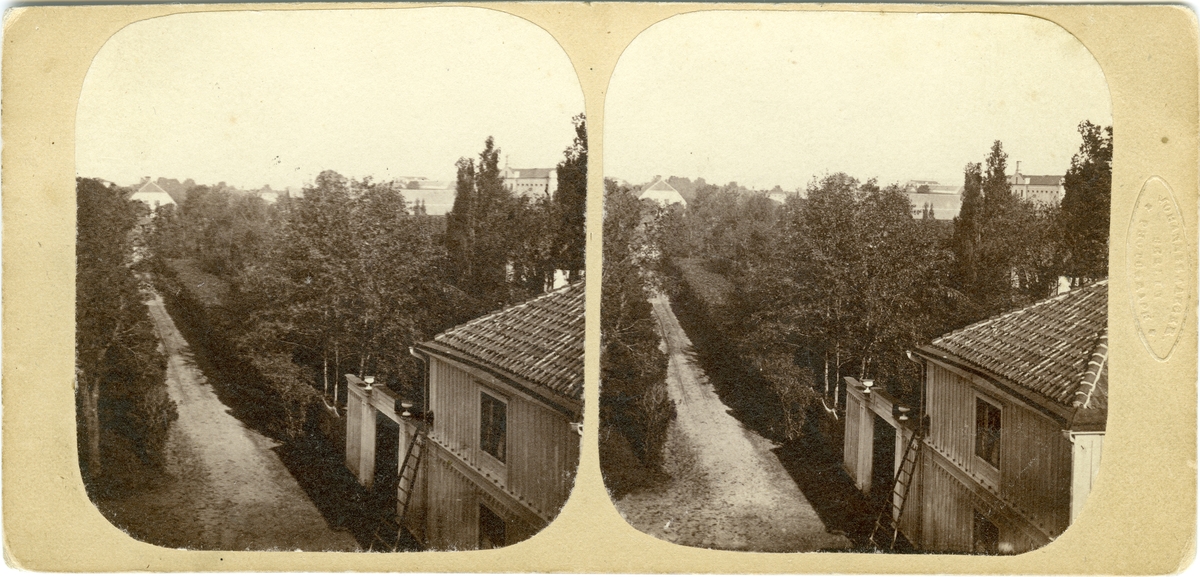 Norra entrén till Stora Limugnen i Jönköping år 1859. Bilden är tagen från Limugnens övre våning.