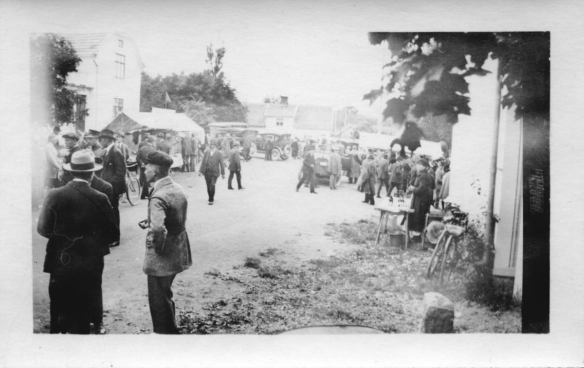Bärgning av S/S Per Brahe utanför Hästholmen i Vättern. Många människor var intresserade och samlades i hamnen och vid marknadsstånden.