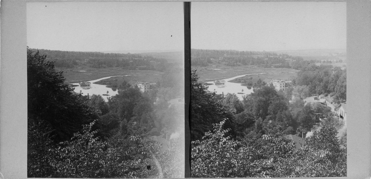Vy över Huskvarnadalen från södra sidan om fallen.