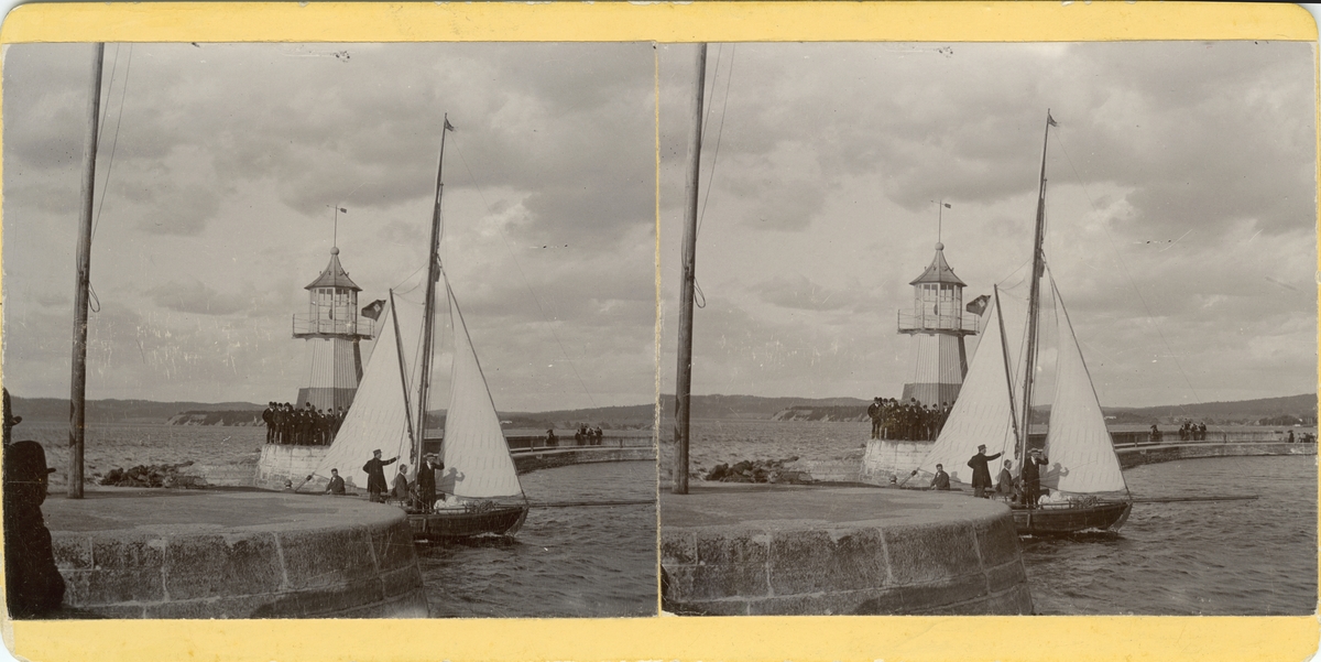 Ett båt vid piren i yttre hamnen i Jönköping.