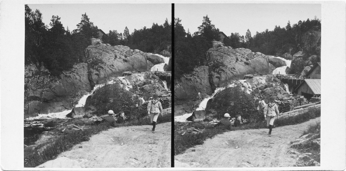 Postmästare Olssons barn leker vid Ebbes kvarn i Huskvarna.