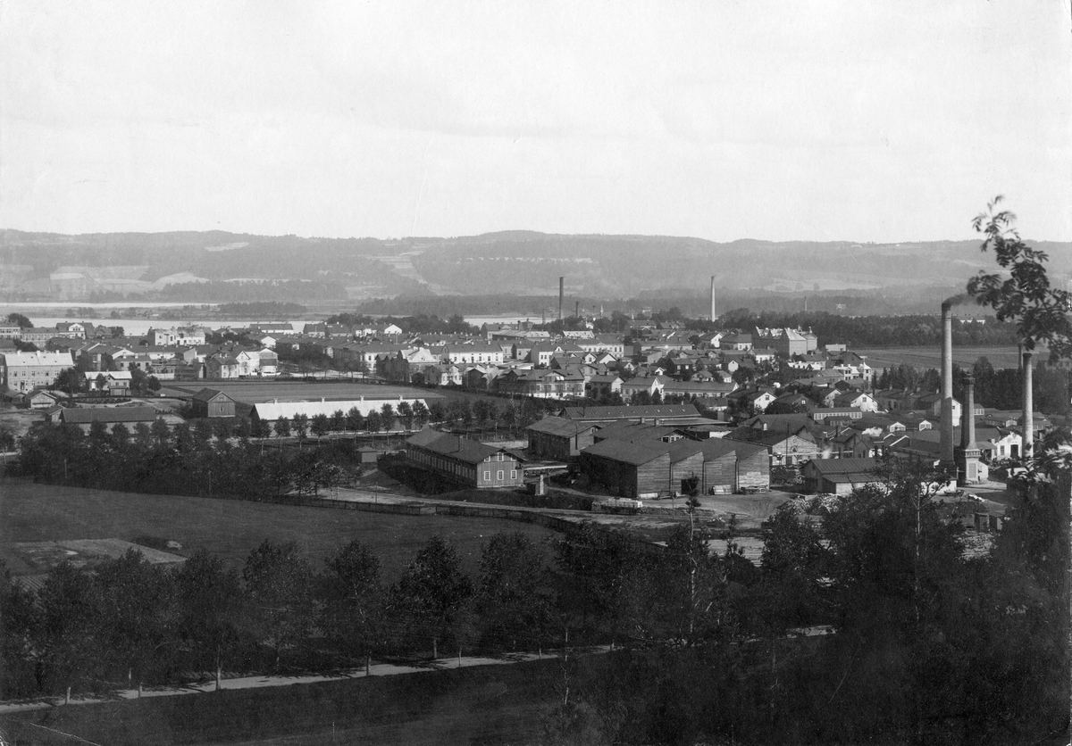 Västra delen av Jönköping år 1902 med Munksjön i bakgrunden.