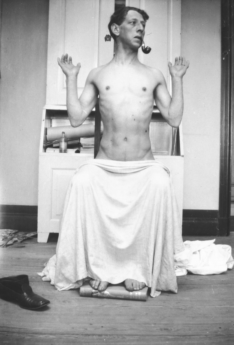Porträtt av John Bauer som sitter modell, troligtvis till målningen "Freja".
