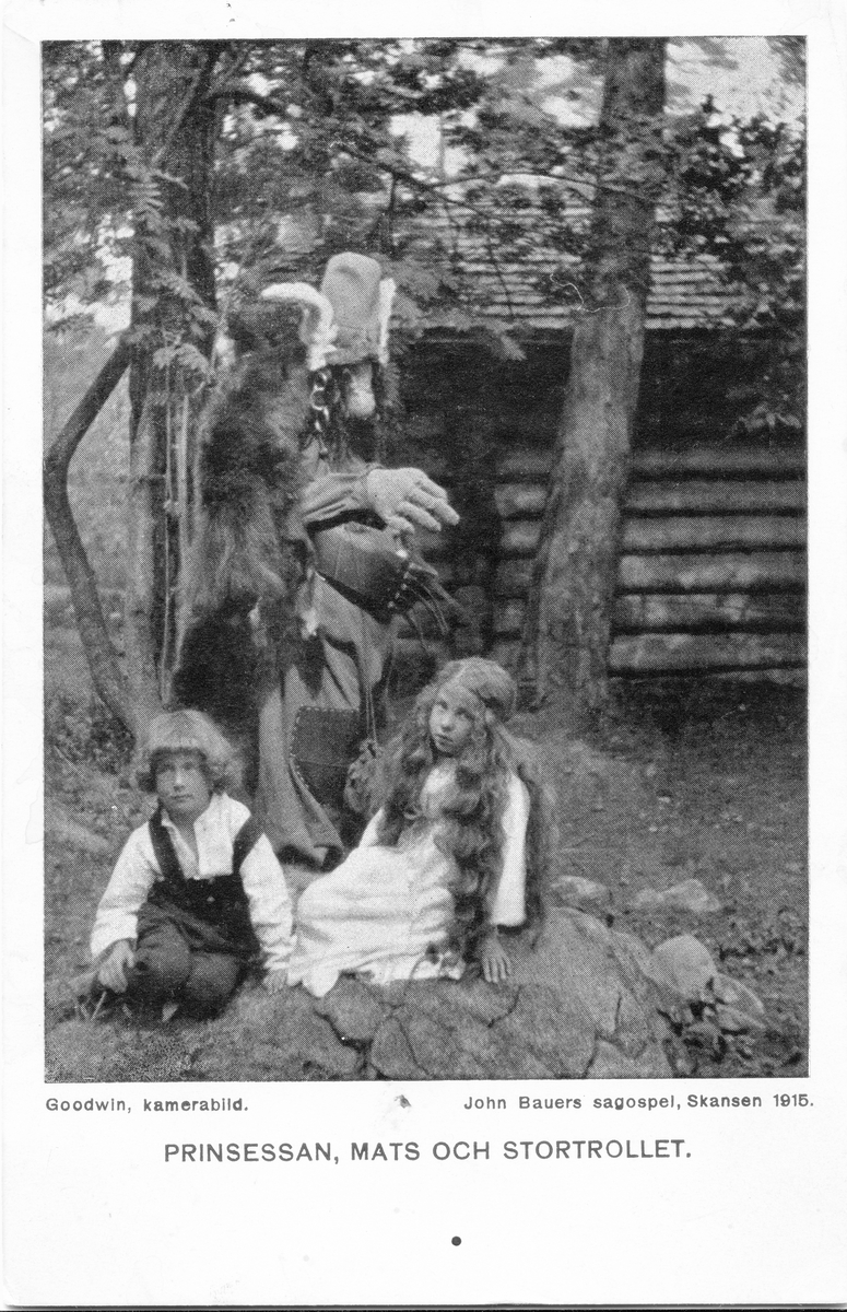 Teaterföreställning för barn, "Prinsessan, Mats och Stortrollet" ett sagospel av John Bauer, på Skansen i Stockholm.