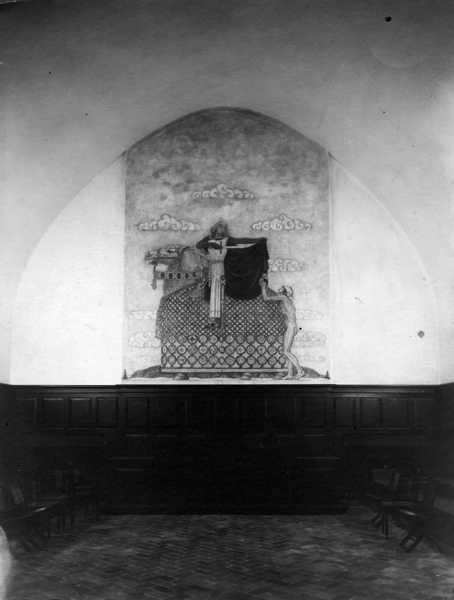 John Bauers Al Secco målning "Den helige Martin och tiggaren" som finns i Odd Fellow huset i Nyköping.