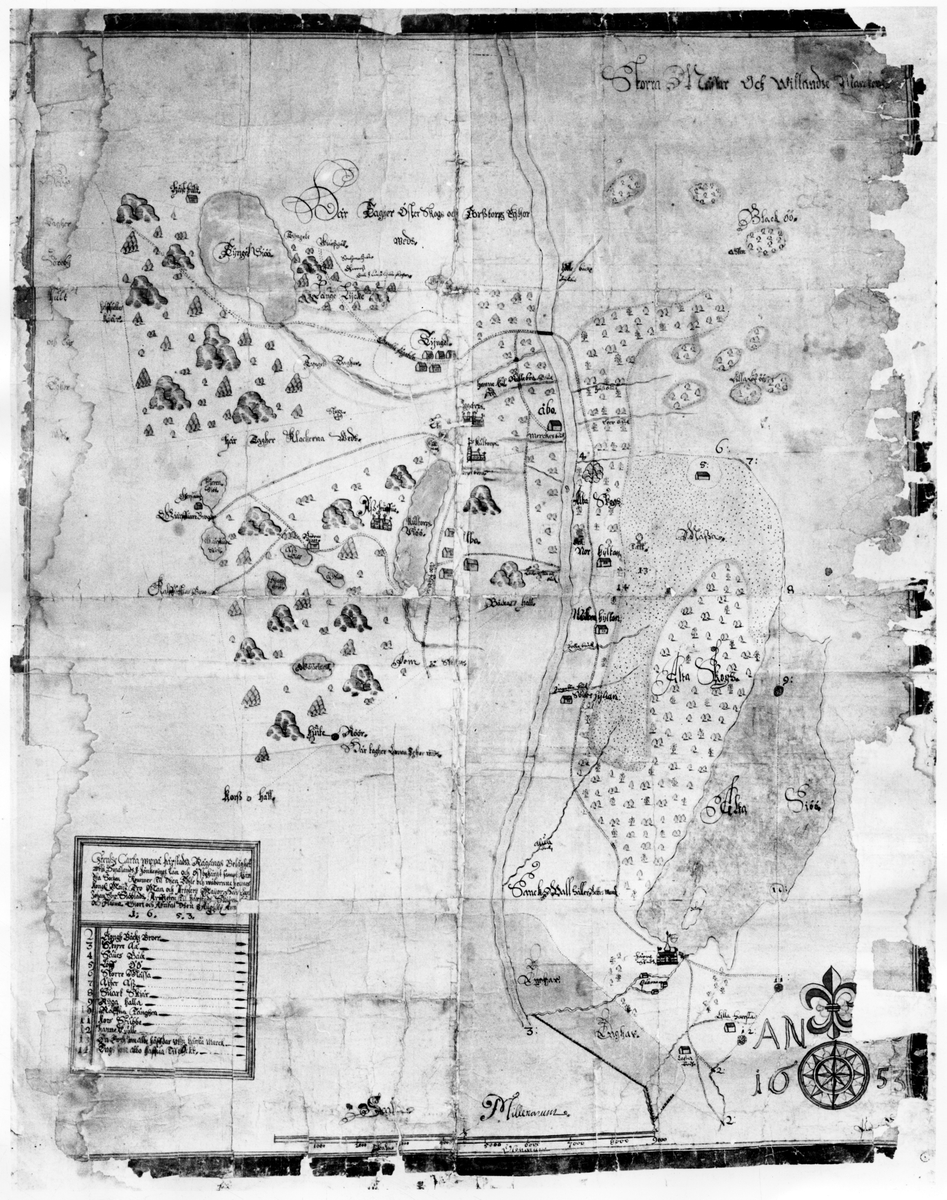 Karta över Herrestads ägor år 1653.